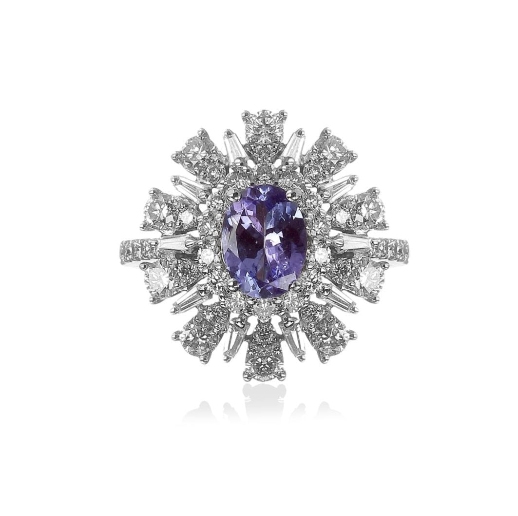 Anel Flor Tanzanita Brilhantes e Diamantes Baguete 2.9 CT