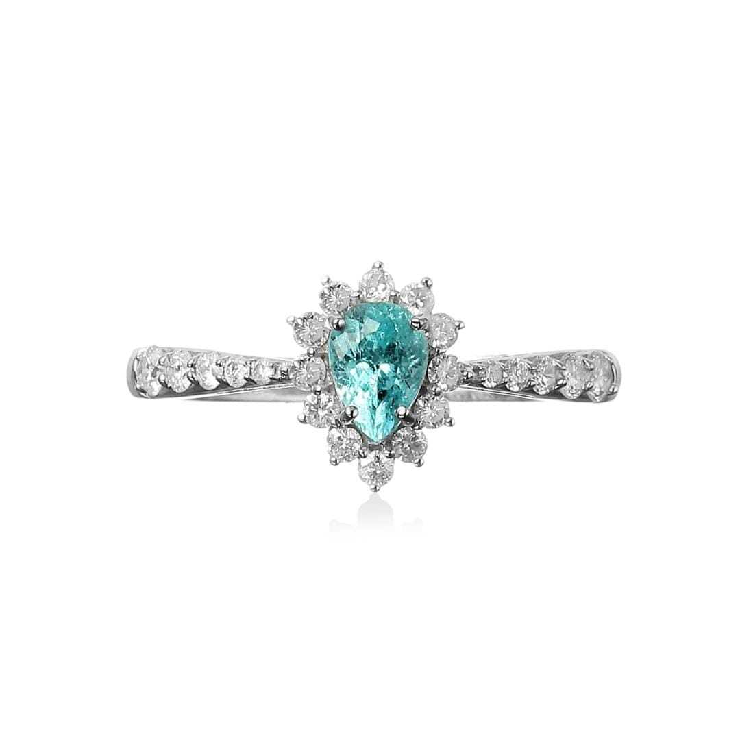 Anel Solitário Gota Turmalina Paraíba e Brilhantes 1.3 CT