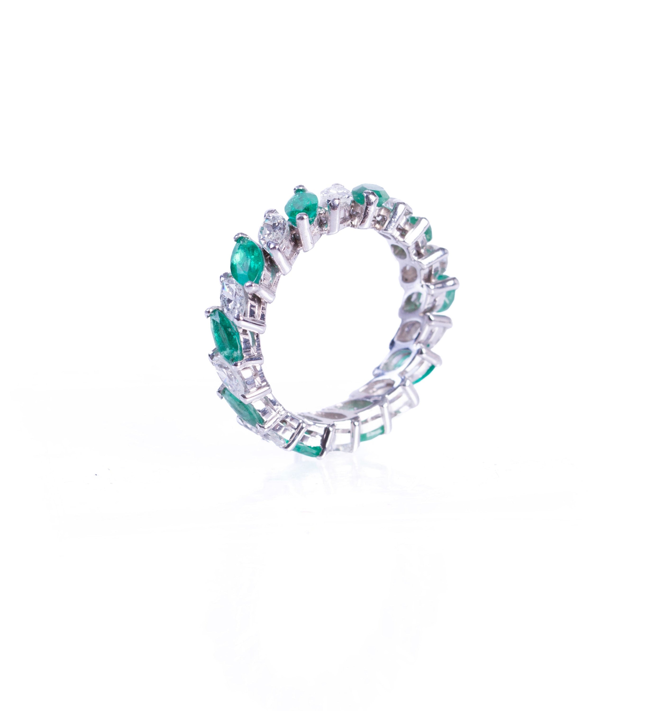 Aliança Esmeraldas Navete e Diamantes Navete 4 CT