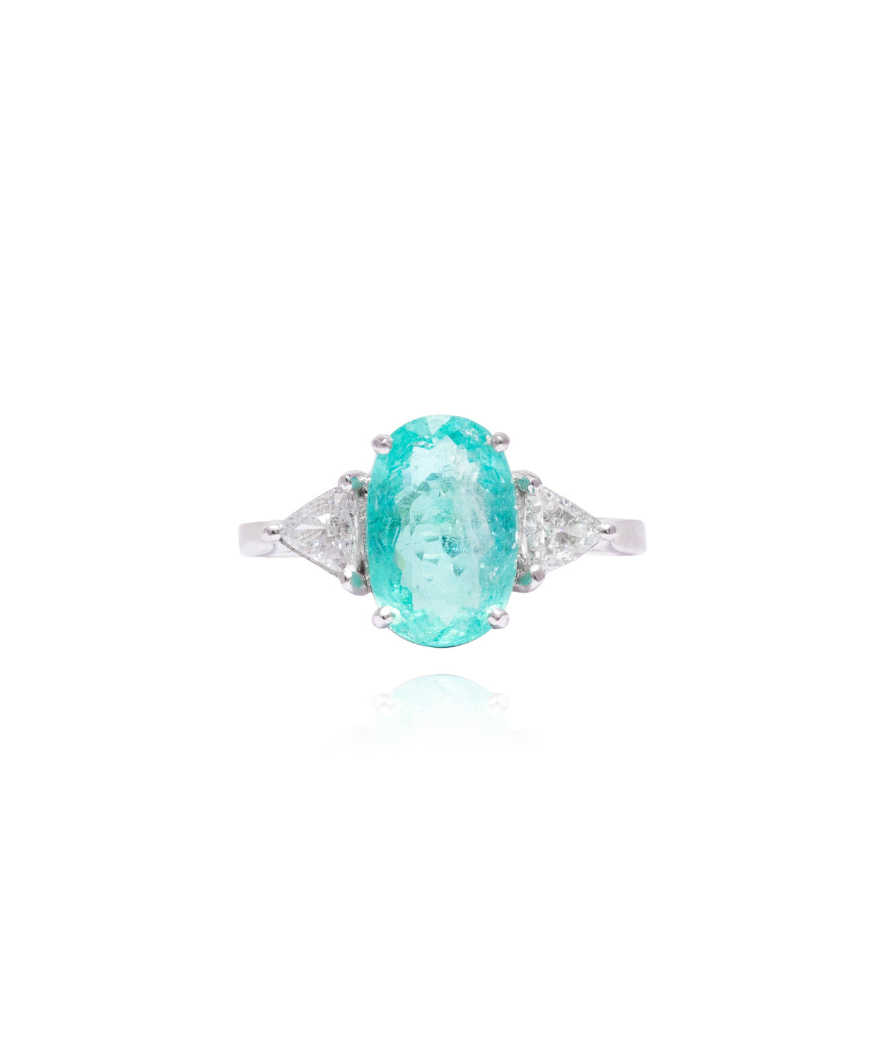 Anel Turmalina Paraíba Oval e Diamantes Trillion 2.89 CT