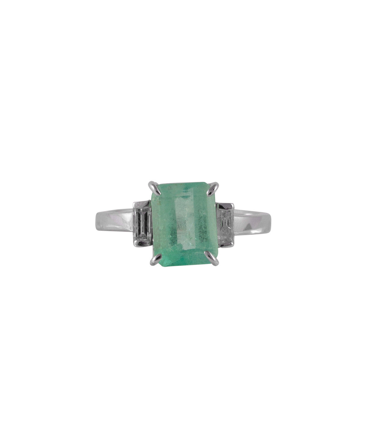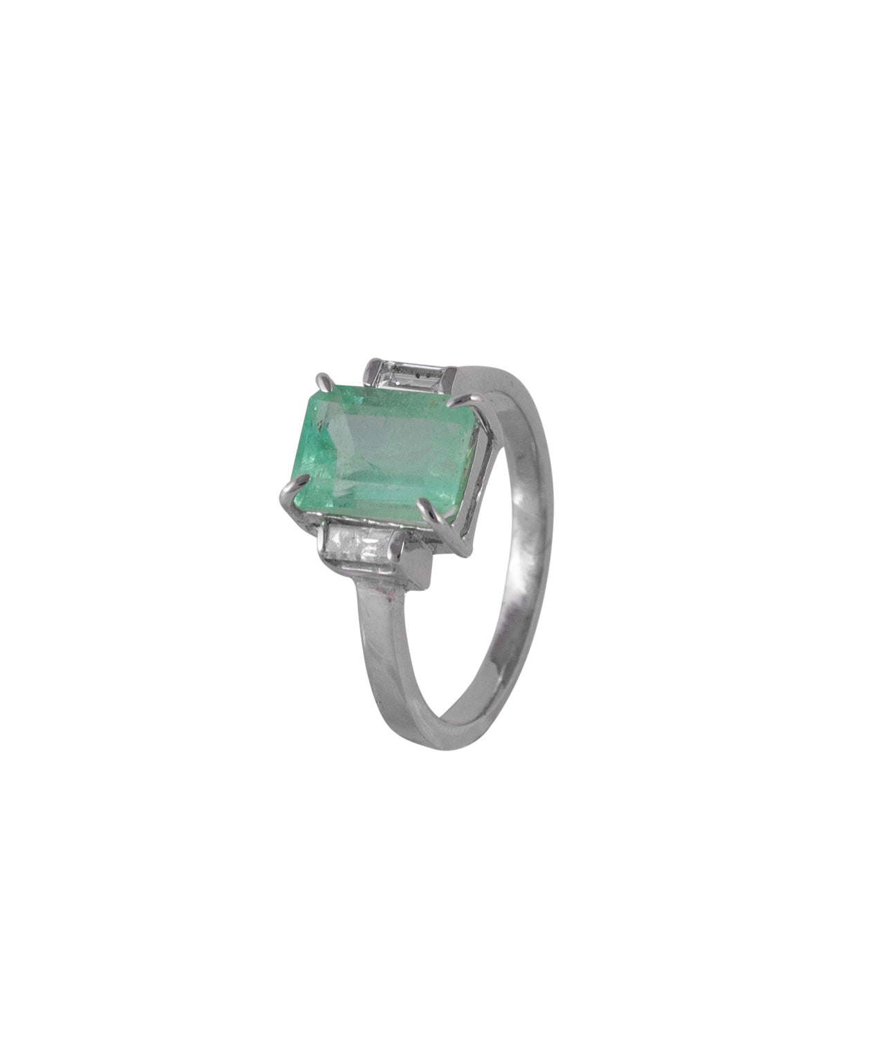 ANEL RADIANT THREE STONE ESMERALDA COLOMBIANA E DIAMANTES BAGUETE 2.28 CT