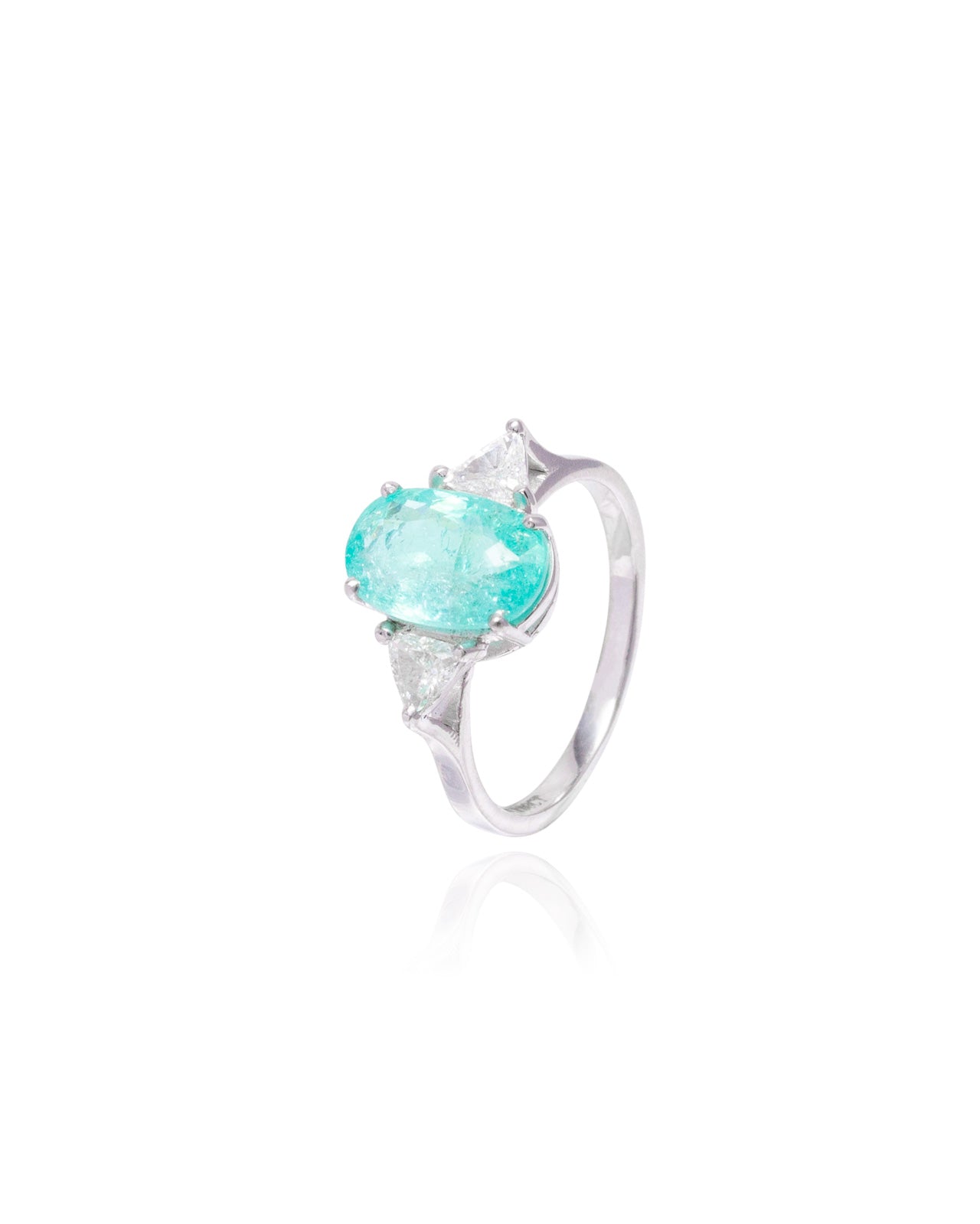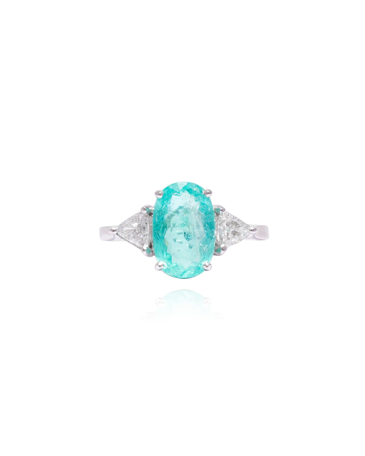 Anel Turmalina Paraíba Oval e Diamantes Trillion 2.89 CT
