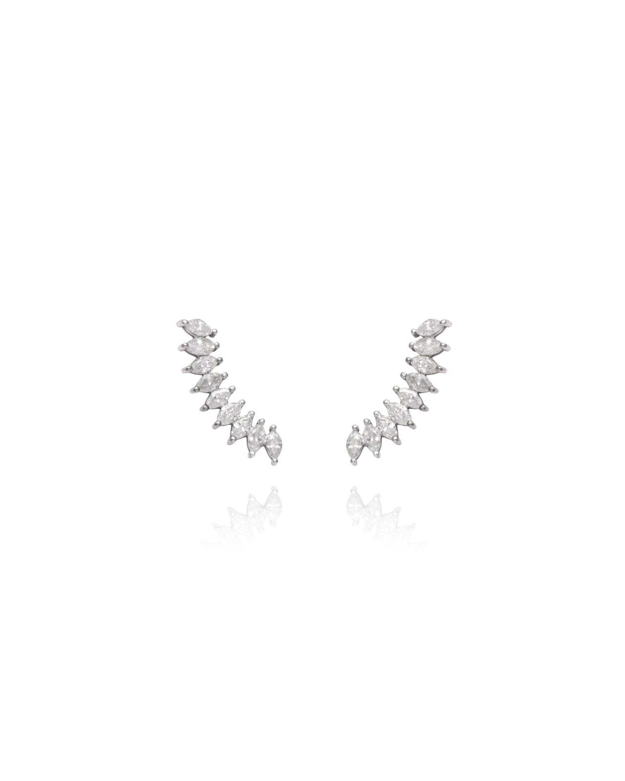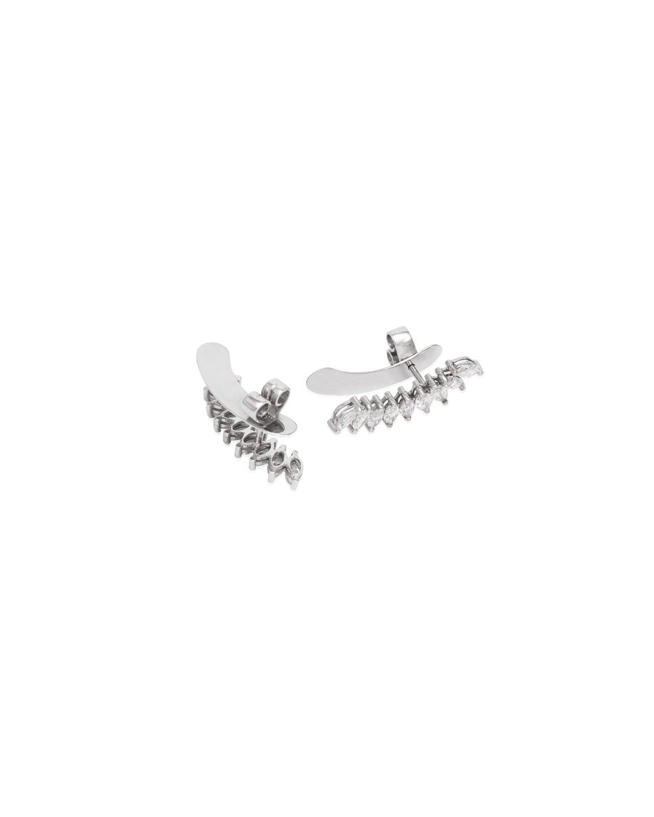 Ear cuff em ouro branco 18K com diamantes lapidados em formato navete, totalizando 1.1 quilate. Um design elegante e contemporâneo que acompanha o contorno da orelha, criando um efeito sofisticado e luminoso.