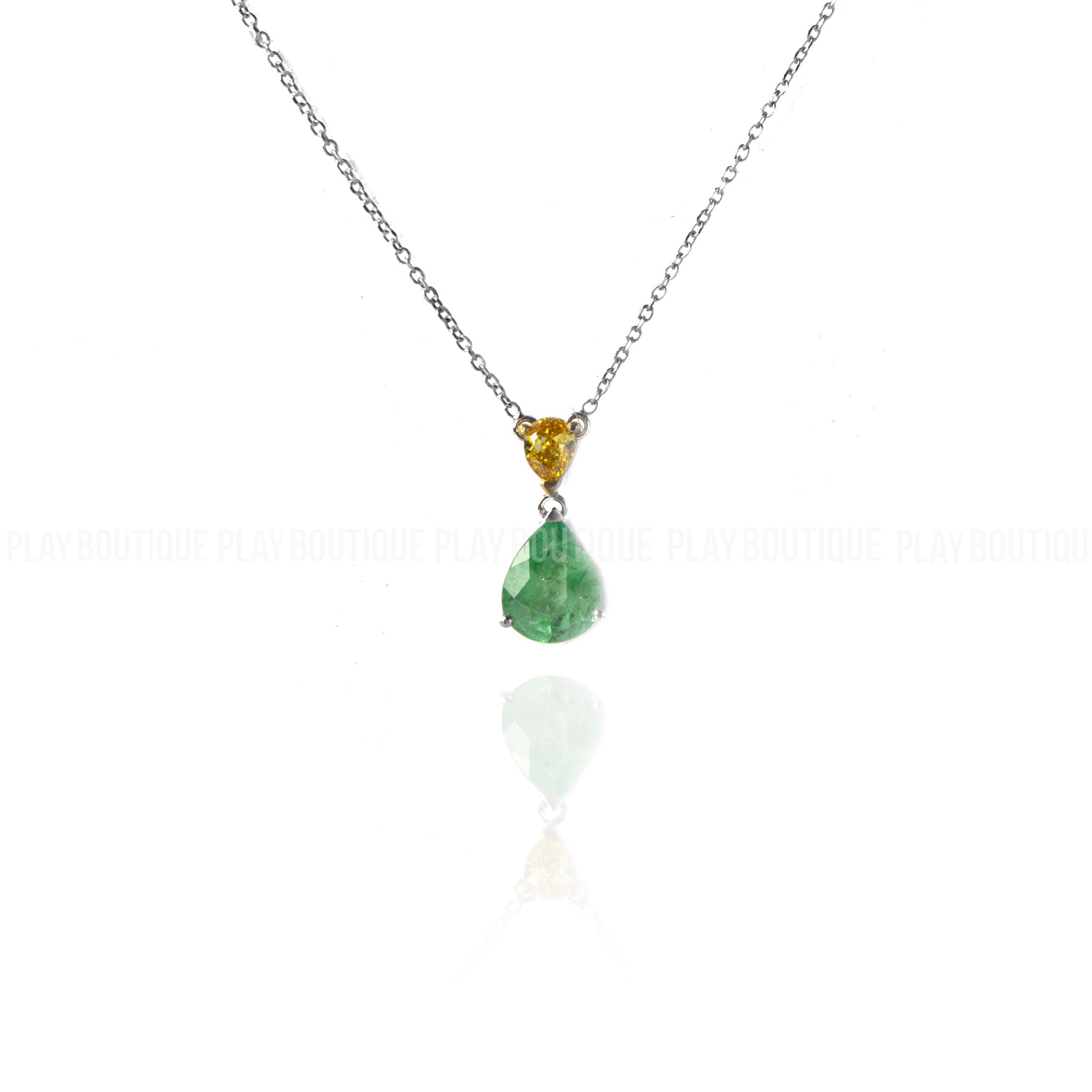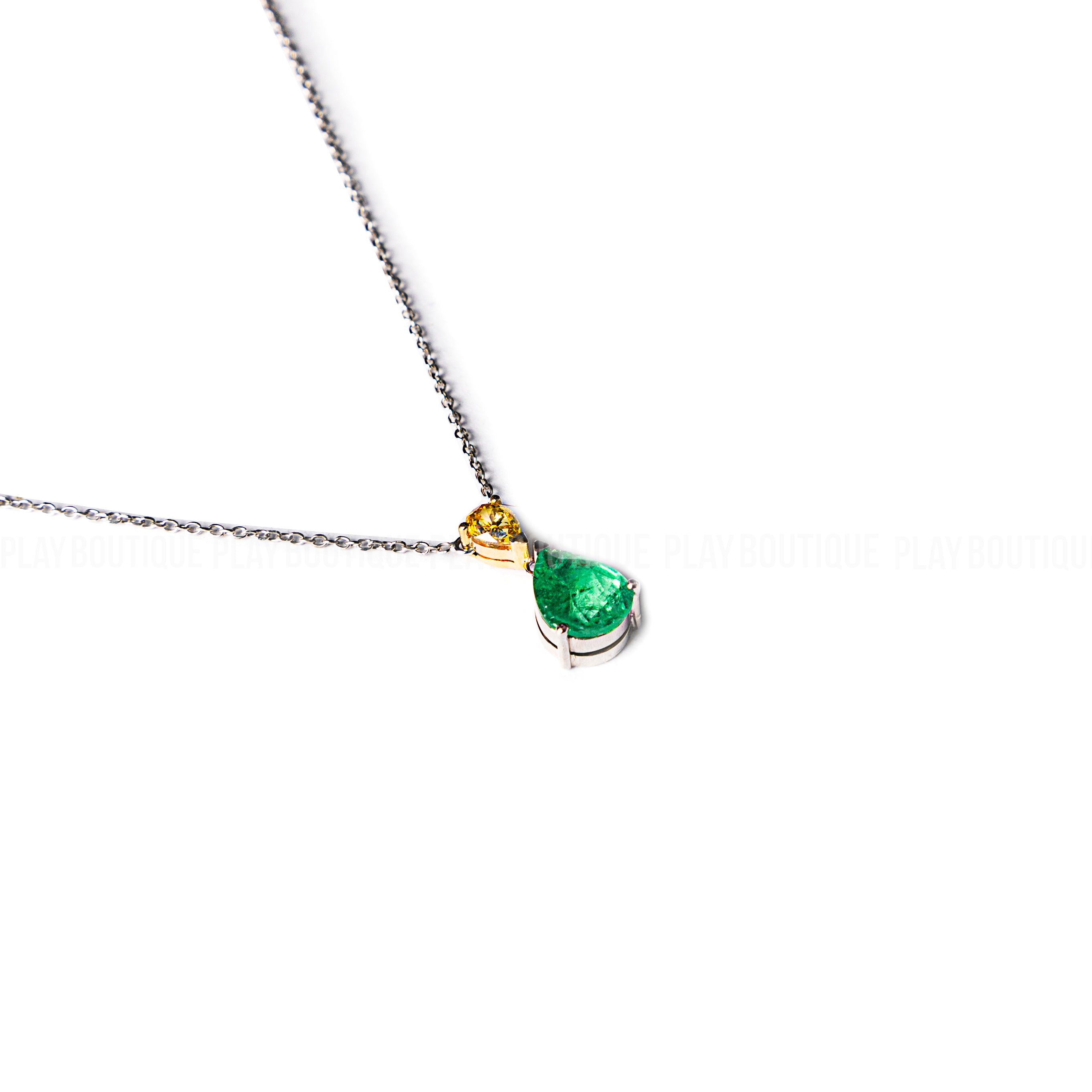 COLAR GOTA FANCY YELLOW E ESMERALDA BRASILEIRA 1.64 CT