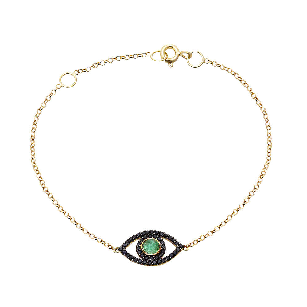 PULSEIRA OLHO GREGO OURO ESMERALDA COM SAFIRAS NEGRAS