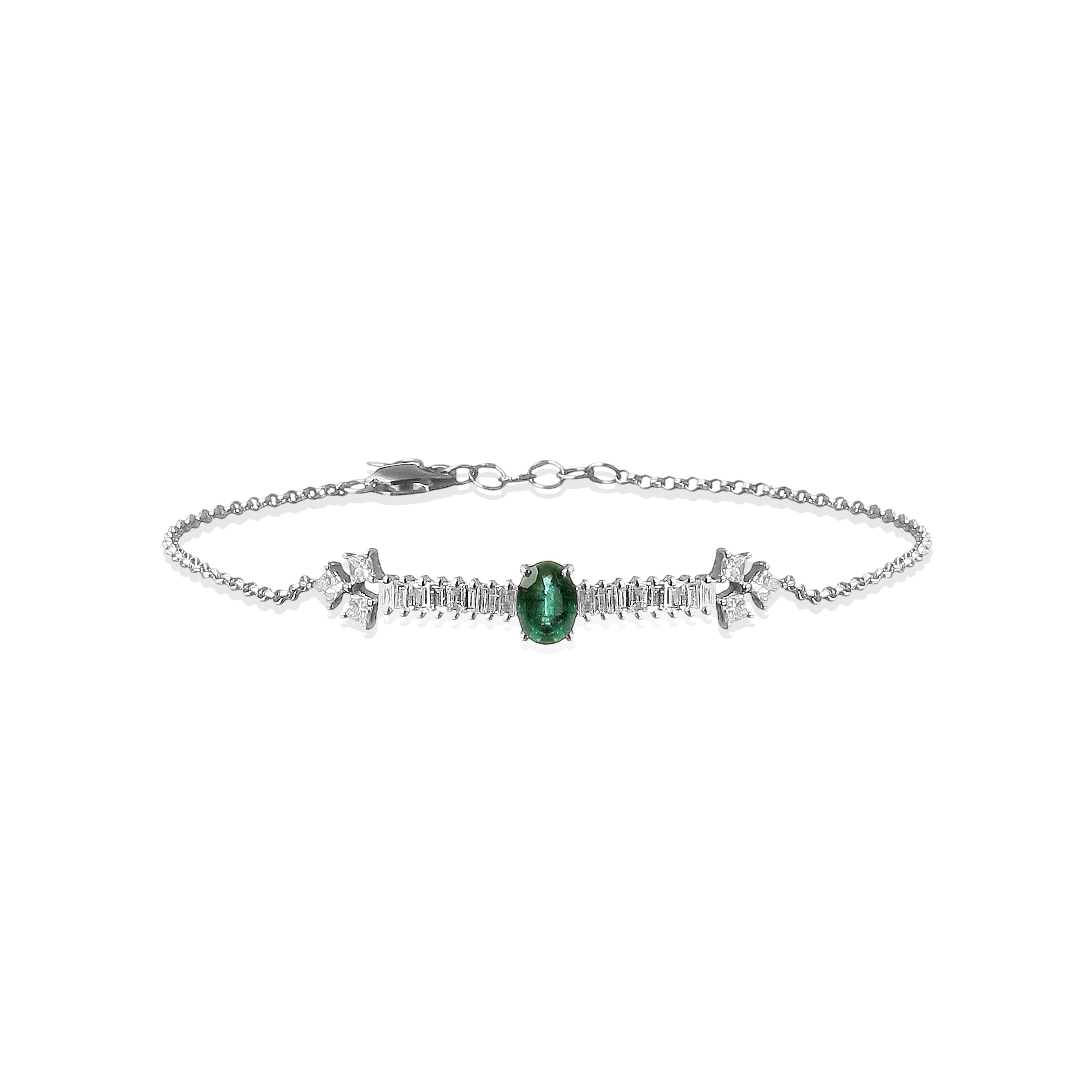 Pulseira Esmeralda Diamantes Baguete e Princess
