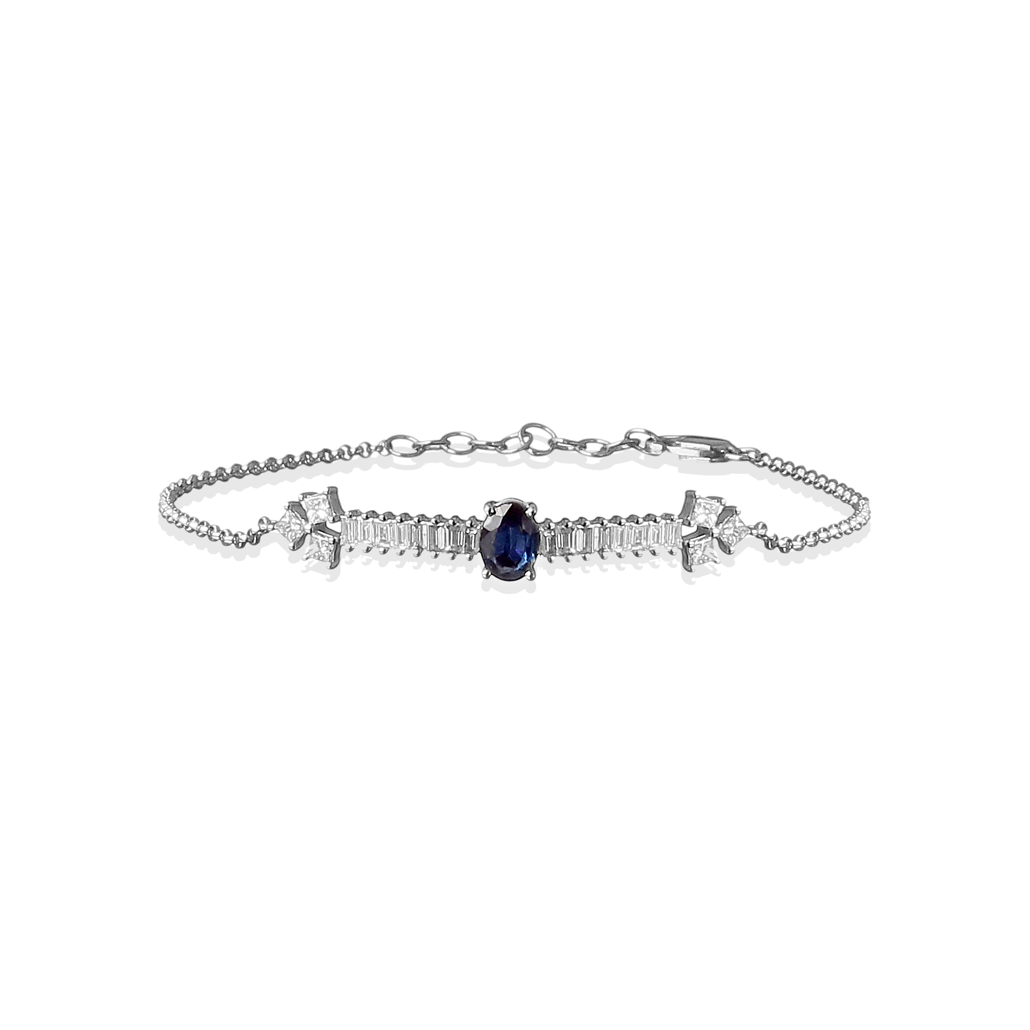 PULSEIRA SAFIRA DIAMANTES BAGUETE E PRINCESS
